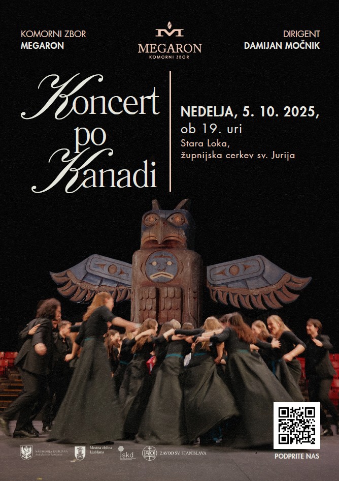 ki ga bo v župnijski cerkvi sv. Jurija ob 19. uri izvedel Komorni zbor Megaron. V začetku poletja je zbor uspešno gostoval na zahodni obali Kanade, kjer je na mednarodnem festivalu Kathaumixw osvojil prestižni naslov »Choir of the World«.V podporo kritju stroškov turneje bodo pevci iskreno hvaležni za vsak vaš dar.